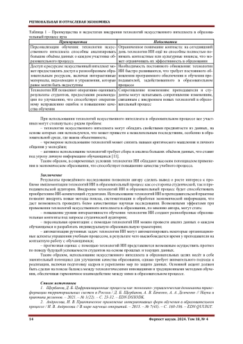 Статья: ИСПОЛЬЗОВАНИЕ ИСКУССТВЕННОГО ИНТЕЛЛЕКТА ДЛЯ ПОВЫШЕНИЯ ЭФФЕКТИВНОСТИ ОБРАЗОВАТЕЛЬНОГО ПРОЦЕССА В ЭКОНОМИКО-УПРАВЛЕНЧЕСКОЙ СФЕРЕ (2024)