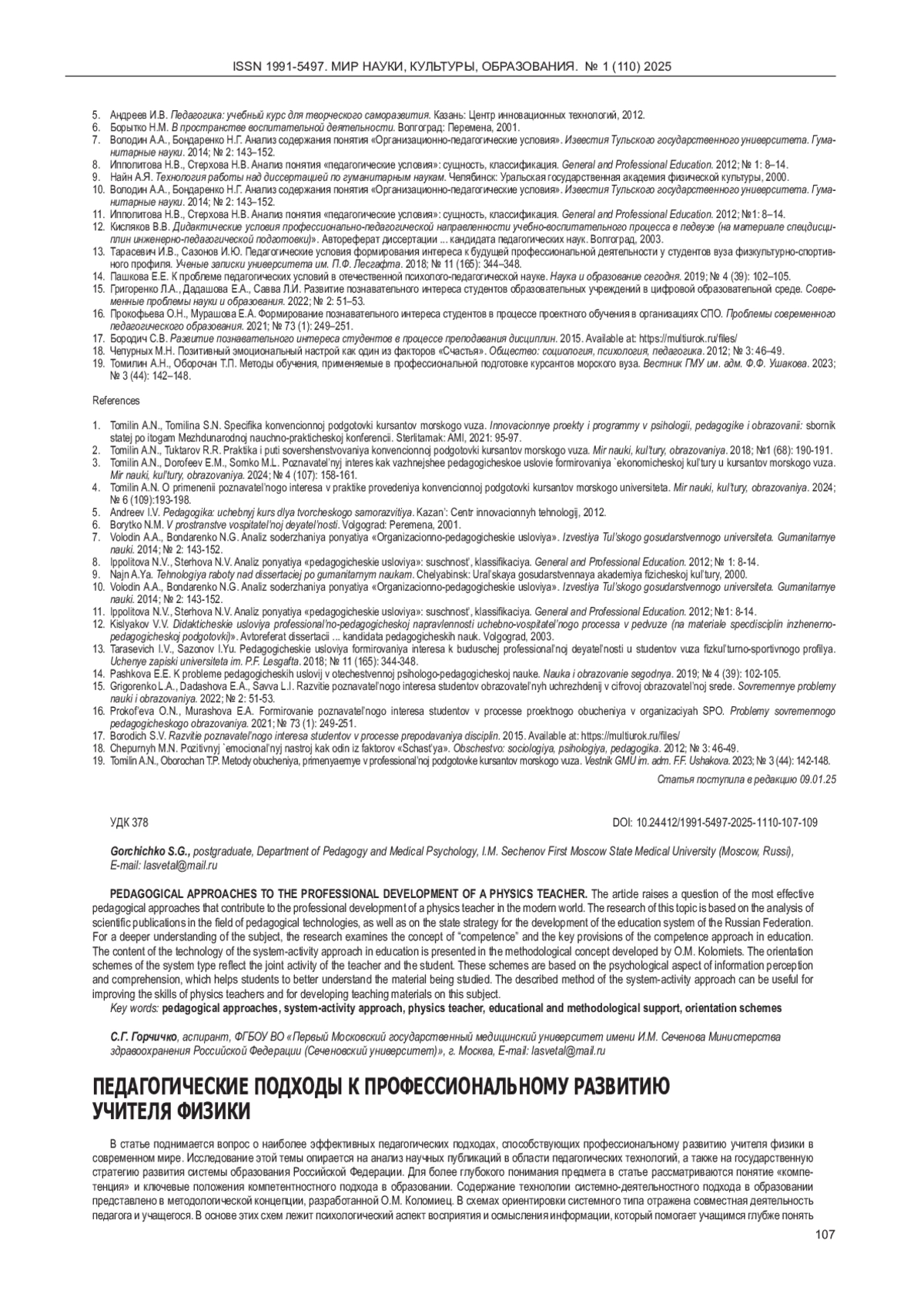 14. Пашкова Е.Е. К проблеме педагогических условий в отечественной психолого-педагогической науке. Наука и образование сегодня. 2019; № 4 (39): 102-105. EDN: ZDVEFF