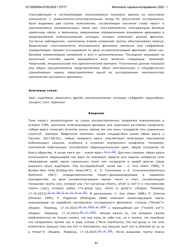 Статья: Репрезентация фрейма «враг» в современных медиадискурсах России и Великобритании (2025)