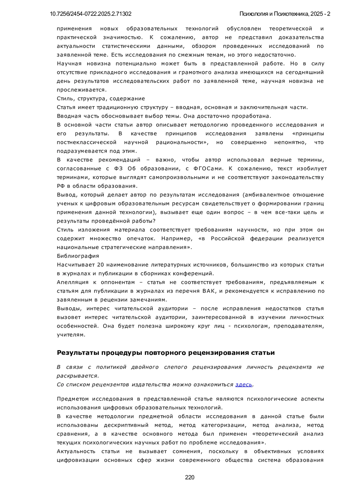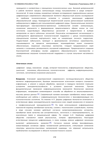 2. Дедов Н. П. Психологические особенности использования цифровых технологий в образовательной деятельности / Н. П. Дедов, О. А. Комиссарова, И. В. Кохова, О. Э. Петруня // Вестник евразийской науки. 2023. Т. 15. №1. URL: https://esj.today/PDF/35FAVN123.pdf.