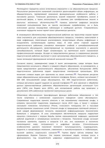 8. Мухаметзянова Ф.Г., Степанова К.И. Размышления о новых поколениях обучающихся и особенности поколения Альфа в глобальном образовании // Глобальная экономика и образование. 2021. 1 (2). С. 42-50.