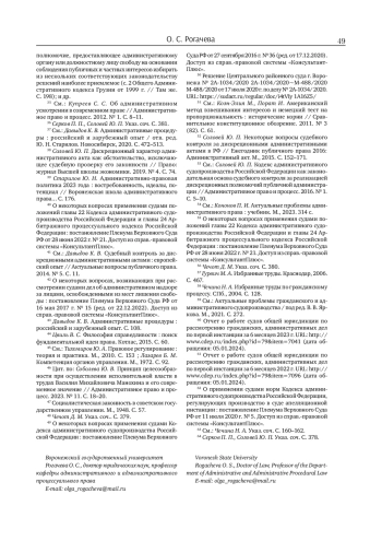 20. Рогачева О. С. Предмет судебной защиты в административном судопроизводстве: субъективные права, законные и публичные интересы (по следам научных трудов профессора Ю. Н. Старилова) // Воронежская школа административного права: четверть века научного поиска / под ред. Ю. Н. Старилова; Воронежский государственный университет. Воронеж, 2023. С. 632. EDN: TJKJCM
