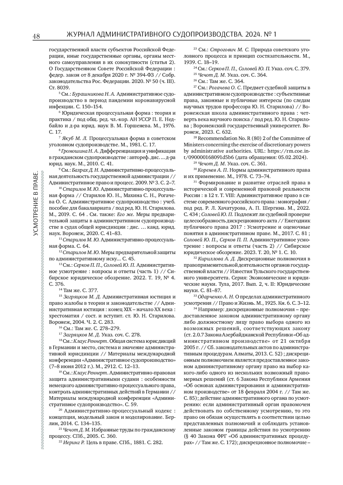 12. Серков П. П., Соловей Ю. П. Административное усмотрение: вопросы и ответы (часть 1) // Сибирское юридическое обозрение. 2022. Т. 19, No 4. С. 376-379, 381. EDN: LDAIMF