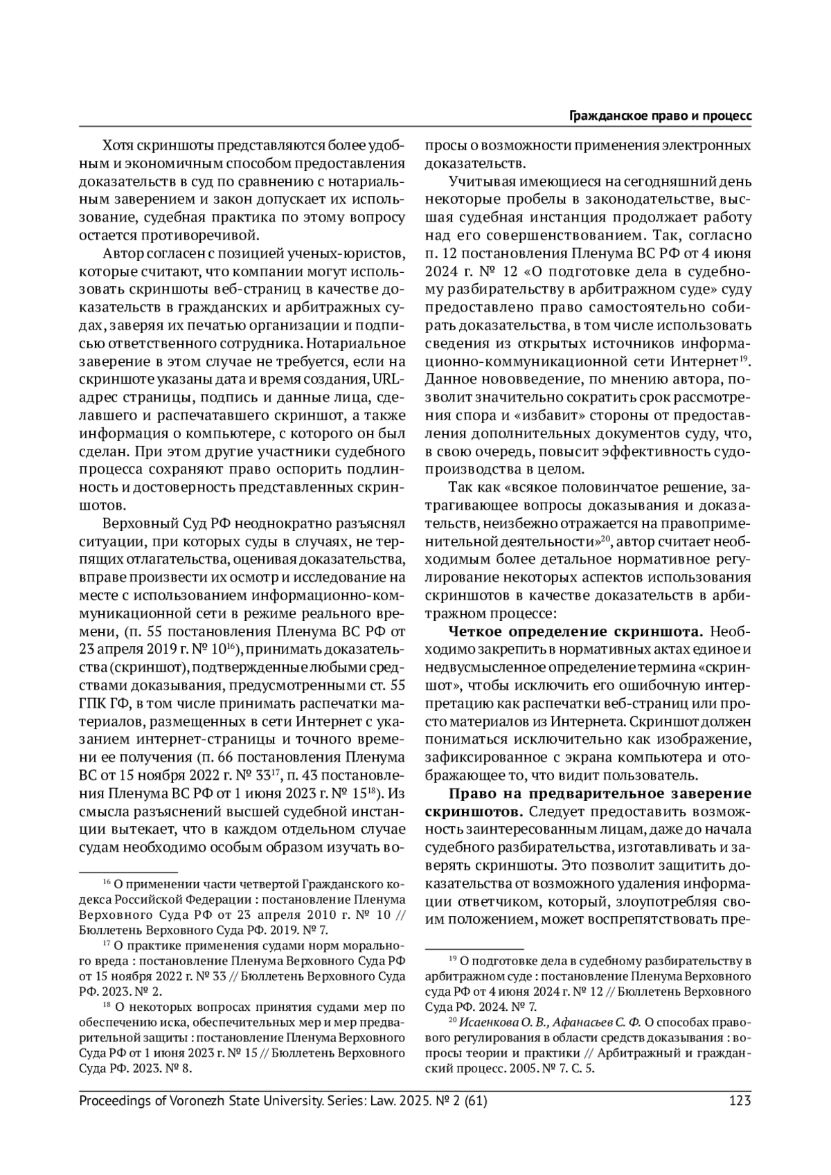 5. Гаврилов Е. В. О доказательственной силе скриншотов в цивилистическом процессе. Комментарий к определению судебной коллегии по гражданским делам ВС РФ от 7 февраля 2023 г.№ 5-ГК22-144-К2 // Вестник экономического правосудия Российской Федерации. 2024. № 8.