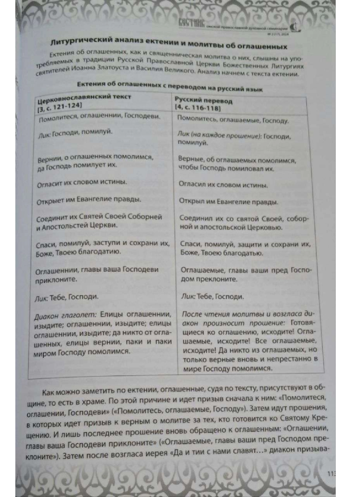 Попов А., диак. Ектения об оглашенных в русской церковной традиции начала XXI в. // Вестник Омской духовной семинарии. - 2024. - №2 (17). - С.112-117.