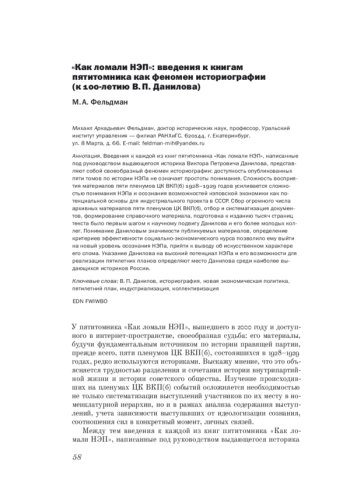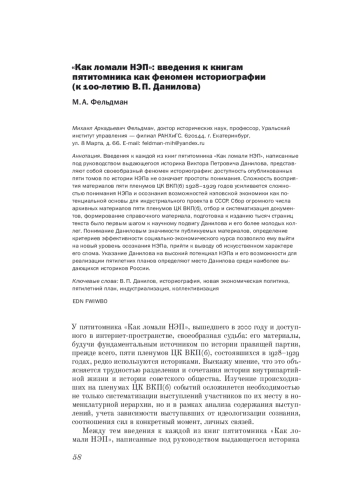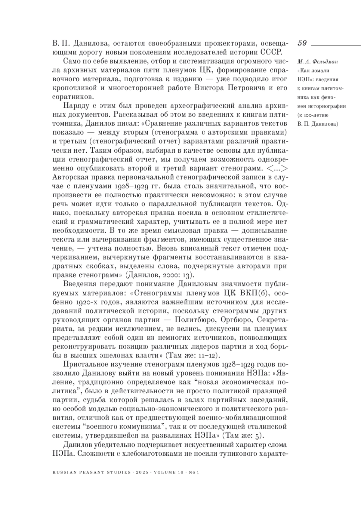 ФЕЛЬДМАН М. А. «КАК ЛОМАЛИ НЭП»: ВВЕДЕНИЯ К КНИГАМ ПЯТИТОМНИКА КАК ФЕНОМЕН ИСТОРИОГРАФИИ (К 100-ЛЕТИЮ В. П. ДАНИЛОВА) // КРЕСТЬЯНОВЕДЕНИЕ. 2025. Т. 10 № 1