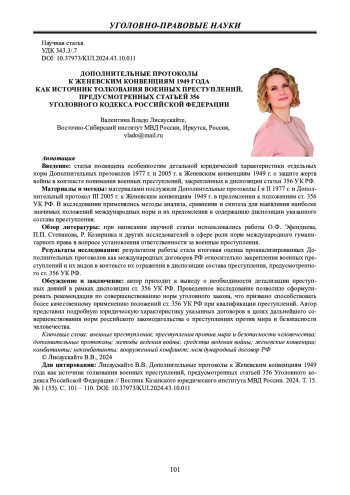 Результаты исследования: результатом работы стала итоговая оценка проанализированных Дополнительных протоколов как международных договоров РФ относительно закрепления военных преступлений и их видов в контексте их отражения в диспозиции состава преступления, предусмотренного ст. 356 УК РФ.