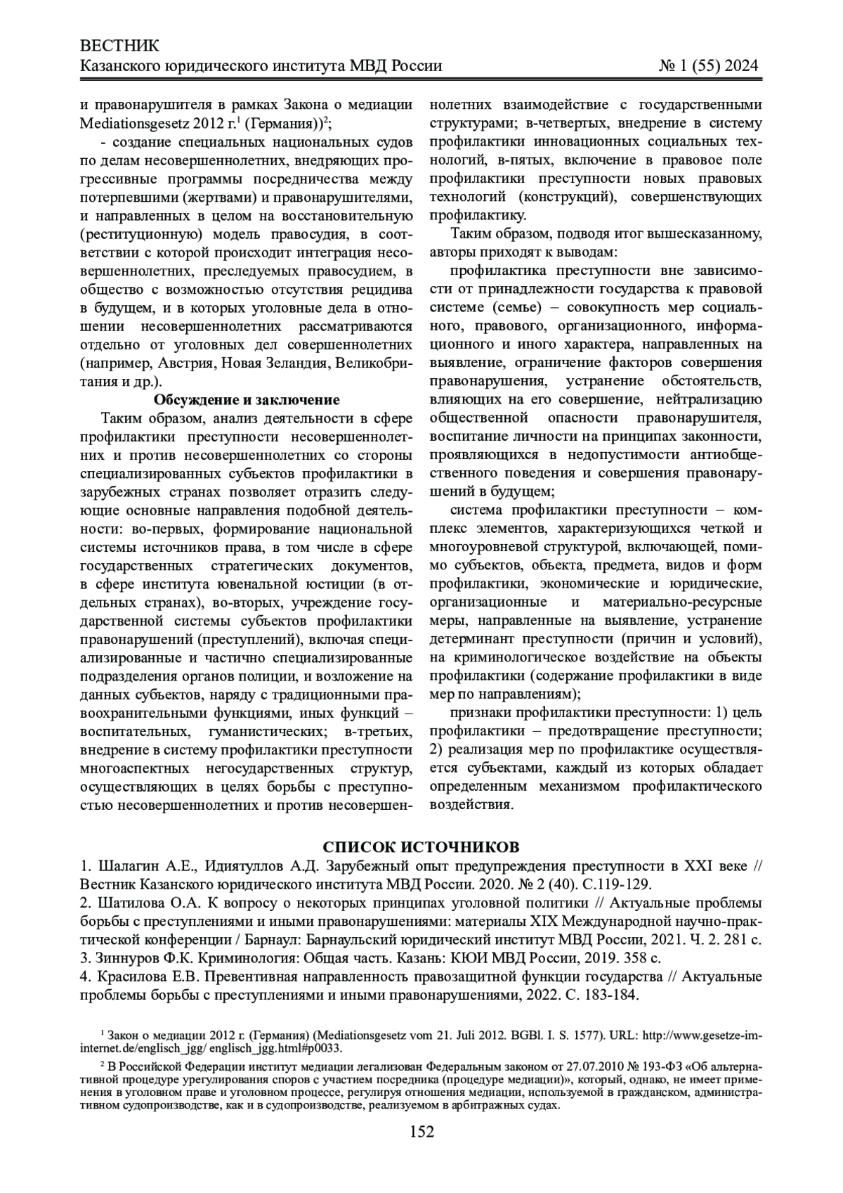 Статья: ХАРАКТЕРИСТИКА НАПРАВЛЕНИЙ ПРОФИЛАКТИКИ ПРЕСТУПНОСТИ В ДЕЯТЕЛЬНОСТИ ОРГАНОВ ВНУТРЕННИХ ДЕЛ: ОТЕЧЕСТВЕННЫЙ И ЗАРУБЕЖНЫЙ ОПЫТ (2024)