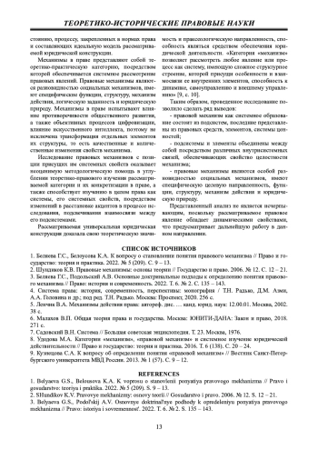1. Беляева Г.С., Белоусова К.А. К вопросу о становлении понятия правового механизма // Право и государство: теория и практика. 2022. № 5 (209). С. 9 - 13.