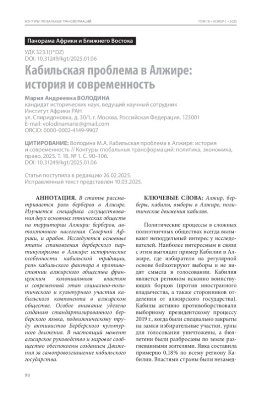 15. Tilleli E. Le Mouvement citoyen de Kabylie // Pouvoirs. - 2003. - N 3 (106). - P. 149-162. - Франц. яз. - https://doi.org/10.3917/pouv.106.0149.