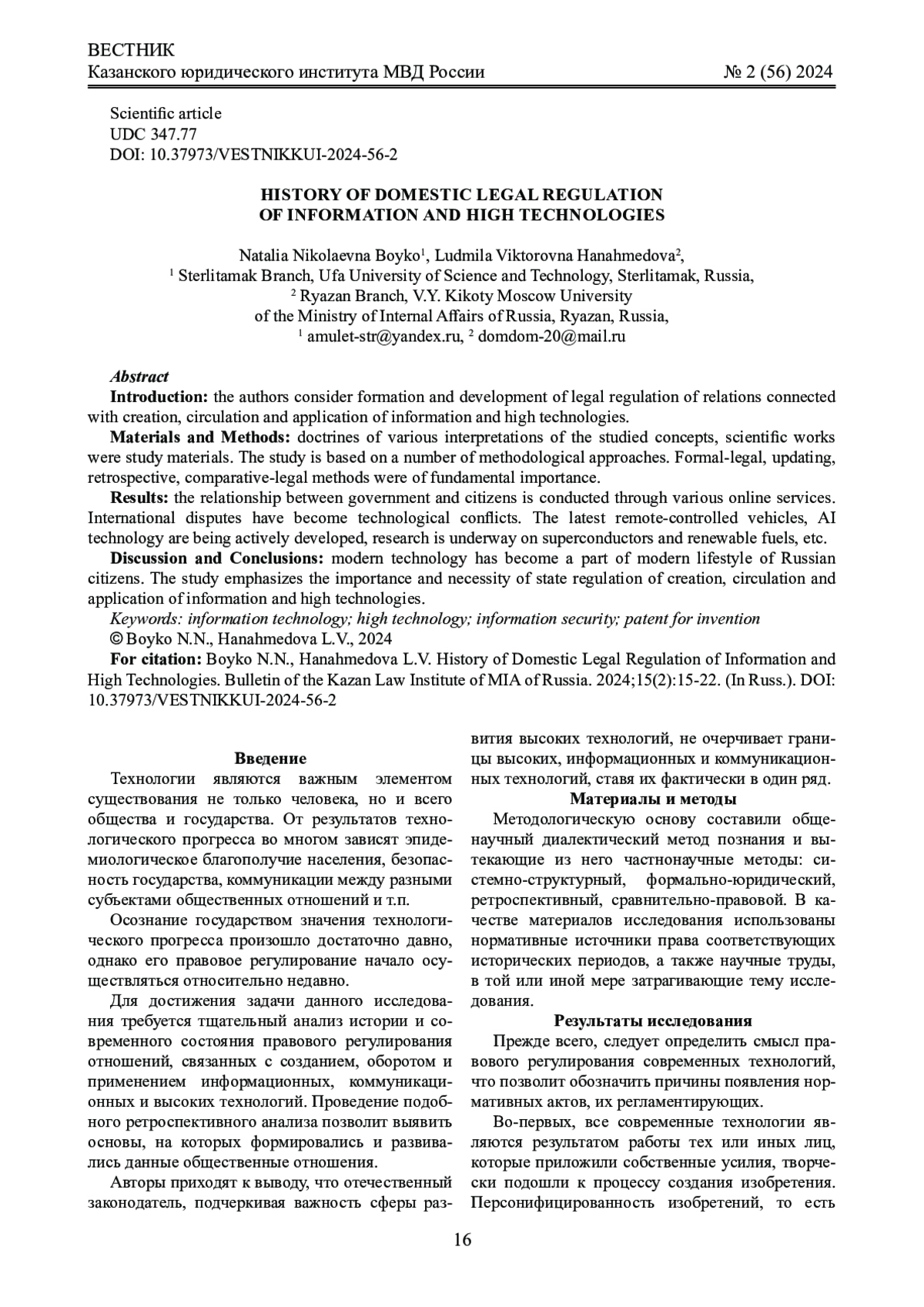 11. Киков Ш.М. О некоторых аспектах использования в отечественном законодательстве и юридической литературе термина “высокие технологии” // Вестник Московского университета МВД России. 2012. № 10. С. 183 - 185. EDN: PXKPCT