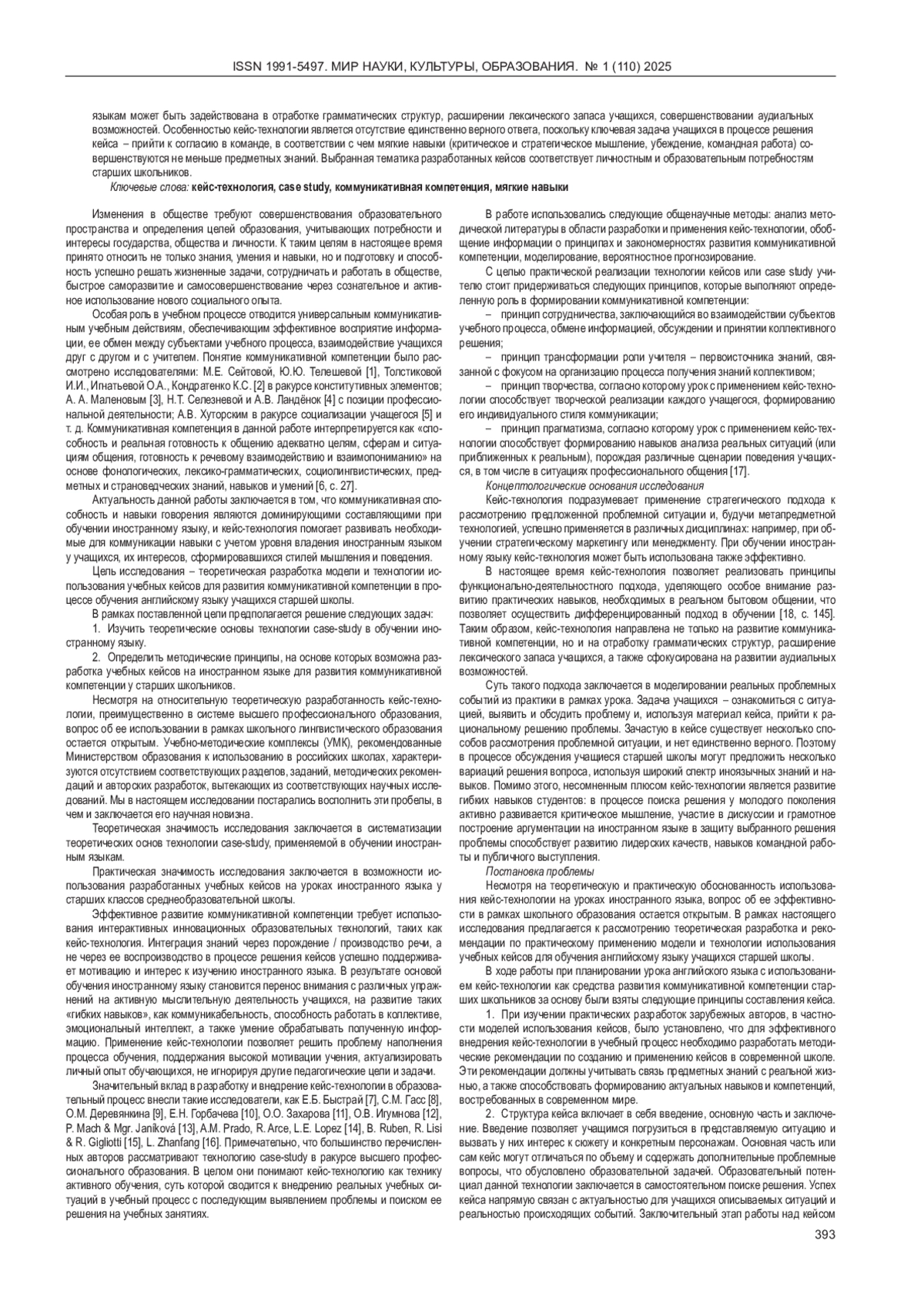 16. Zhanfang L. Connecting Reading and Writing: A Case Study. English Language Teaching. 2025; Vol. 8, № 6: 150-158. DOI: 10.5539/elt.v8n6p150 17. Ильина О.К. Использование кейс-метода в практике преподавания английского языка. Языки в аспекте лингвострановедения: сборник научных статей. Ч. 1. 2009: 253-261. EDN: UEFKKZ