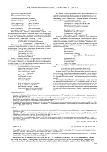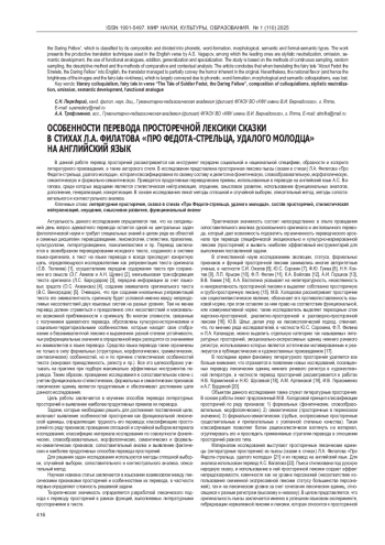 Статья: ОСОБЕННОСТИ ПЕРЕВОДА ПРОСТОРЕЧНОЙ ЛЕКСИКИ СКАЗКИ В СТИХАХ Л. А. ФИЛАТОВА «ПРО ФЕДОТА-СТРЕЛЬЦА, УДАЛОГО МОЛОДЦА» НА АНГЛИЙСКИЙ ЯЗЫК (2025)