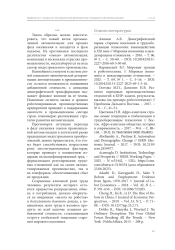 5. Abeliansky A., Prettner K. Automation and Demographic Change // SSRN Electronic Journal. - 2017. − https://doi.org/10.2139/ssrn.2959977.