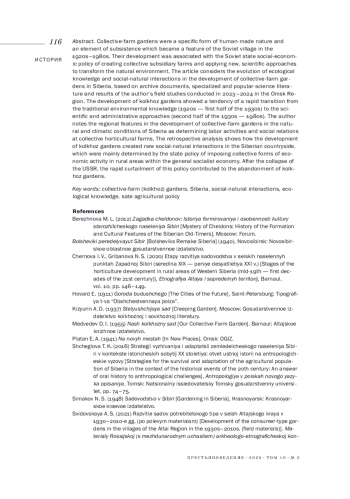 Ключевые фразы: колхозные сады, Сибирь, социоприродные взаимодействия, экологические знания, государственная аграрная политика