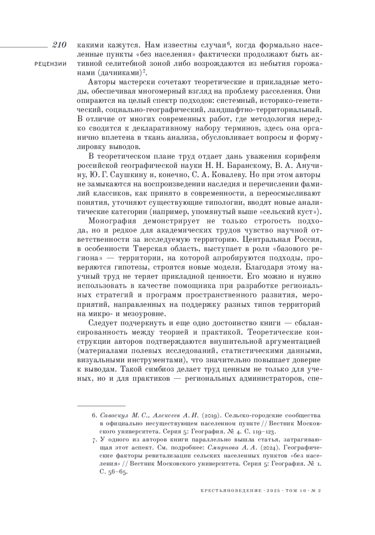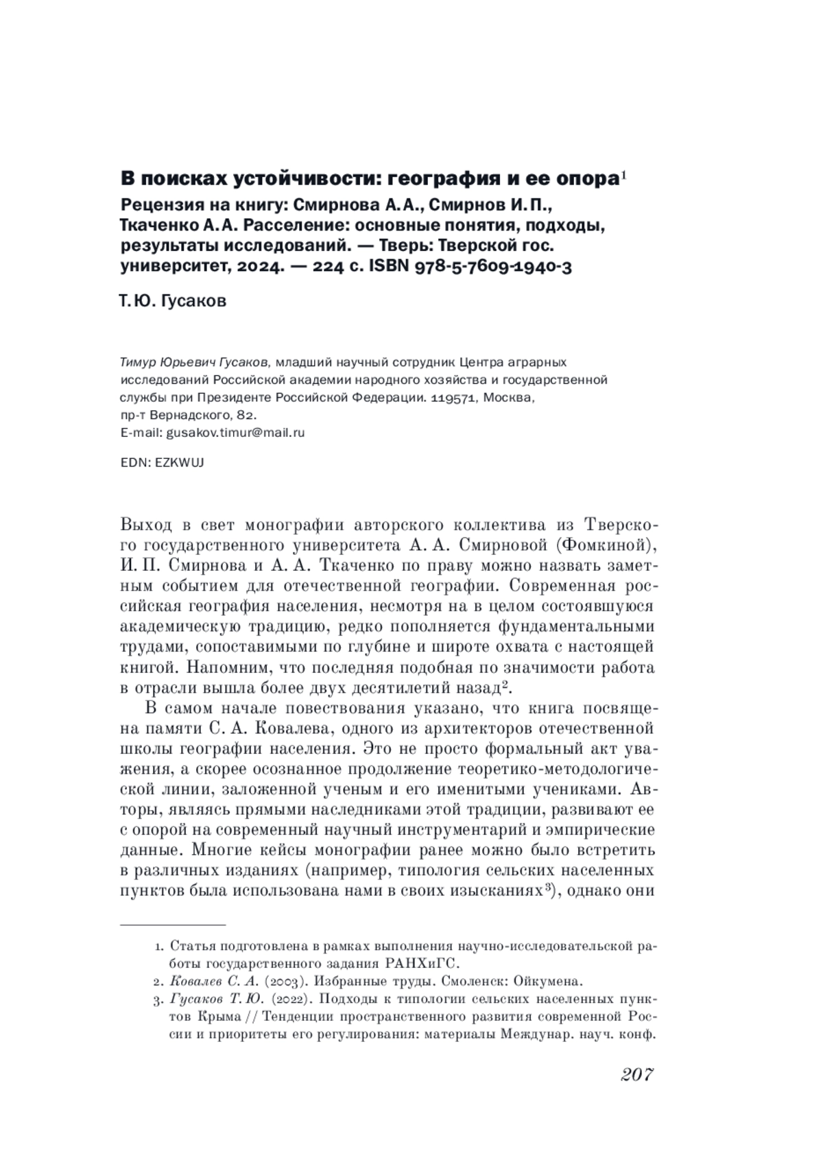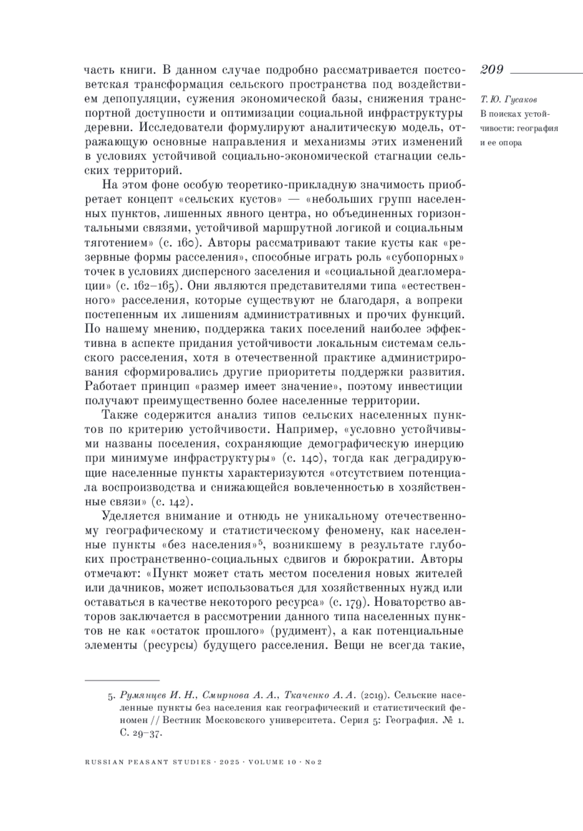 ГУСАКОВ Т. Ю. В ПОИСКАХ УСТОЙЧИВОСТИ: ГЕОГРАФИЯ И ЕЕ ОПОРА // КРЕСТЬЯНОВЕДЕНИЕ. 2025. Т. 10 № 2