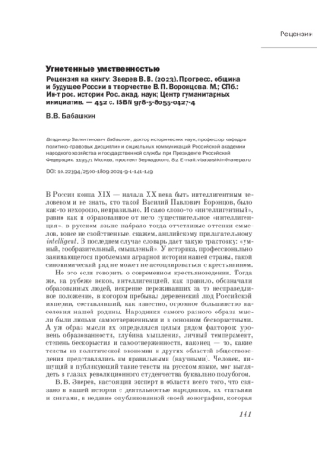 Рецензия на книгу: Зверев В. В. (2023). Прогресс, община и будущее России в творчестве В. П. Воронцова. М.; СПб.: Ин-т рос. истории Рос. акад. наук; Центр гуманитарных инициатив. - 452 с. ISBN 978-5-8055-0427-4