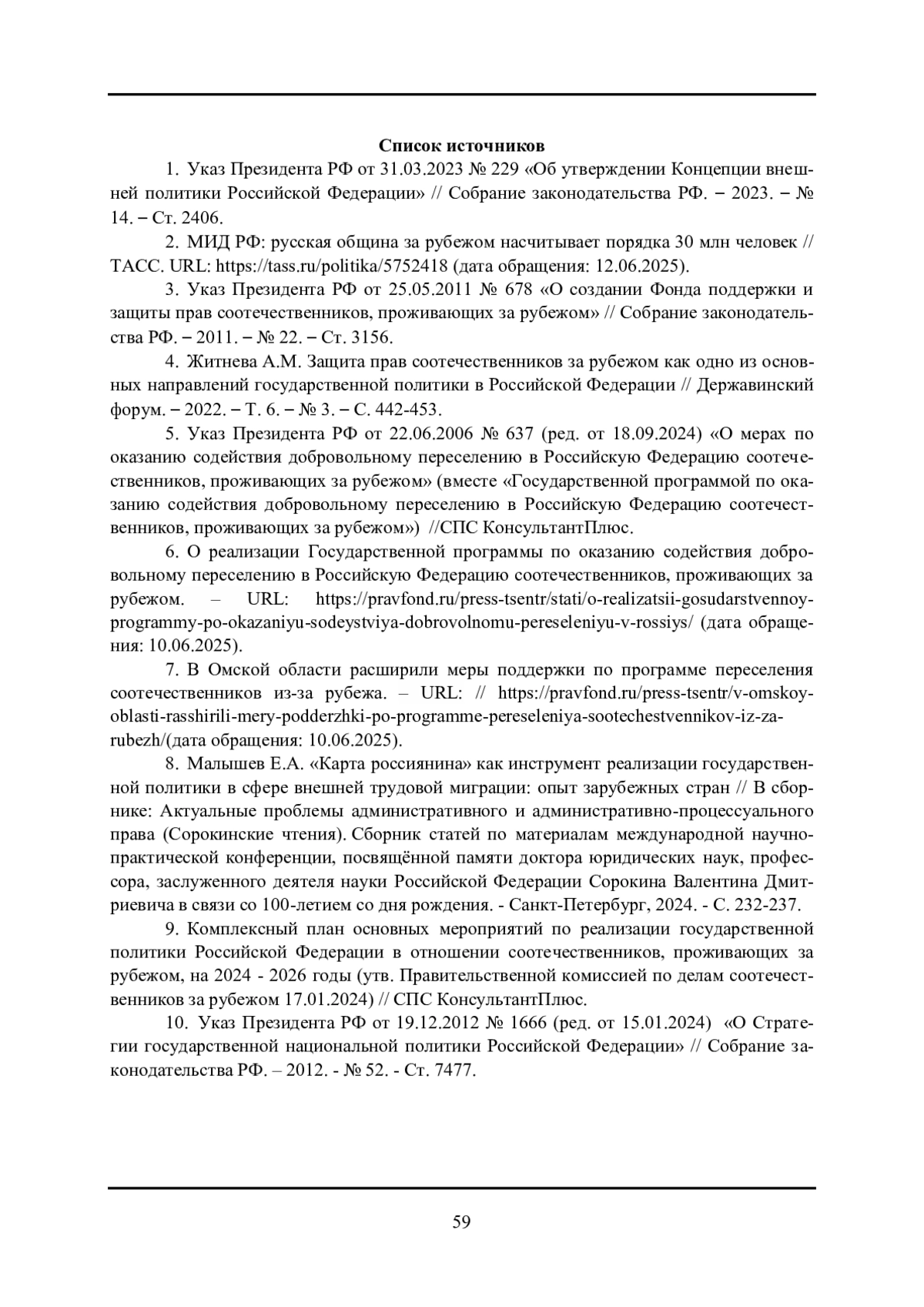 6. О реализации Государственной программы по оказанию содействия добровольному переселению в Российскую Федерацию соотечественников, проживающих за рубежом. - URL: https://pravfond.ru/press-tsentr/stati/o-realizatsii-gosudarstvennoy-programmy-po-okazaniyu-sodeystviya-dobrovolnomu-pereseleniyu-v-rossiys/(дата обращения: 10.06.2025).
