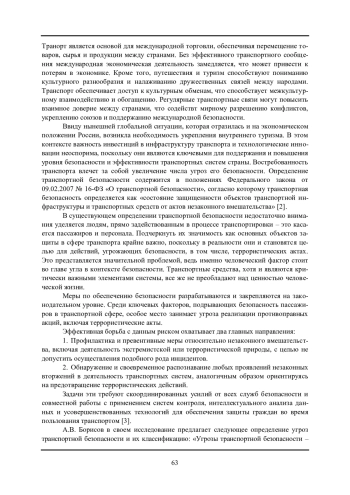 Авторами отмечено, что текущее определение транспортной безопасности оказывается неполным и требует пересмотра. Принимая во внимание все вышеизложенное, рекомендуется переформулировать законодательные положения, стремясь к более четкому признанию людей как первостепенных объектов защиты в сфере транспортной безопасности. Кроме того, анализ действующего законодательства выявил, что сфокусированность государственной политики в области транспортной безопасности преимущественно ориентирована на предотвращение и противодействие террористическим угрозам. Однако такой подход не охватывает все сферы рисков, актуальных для современной транспортной системы. Особенно заметен недостаток внимания к растущей опасности цифровых угроз, таких, как кибератаки, которые могут быть направлены против объектов транспортной инфраструктуры и самих транспортных средств.
