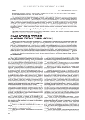 ОУЯН Ю. СУДЬБА В НАРРАТИВНОЙ ПЕРСПЕКТИВЕ (НА МАТЕРИАЛЕ ПОВЕСТИ И. ТУРГЕНЕВА «ЗАТИШЬЕ») // МИР НАУКИ, КУЛЬТУРЫ, ОБРАЗОВАНИЯ. 2025. № 1 (110)