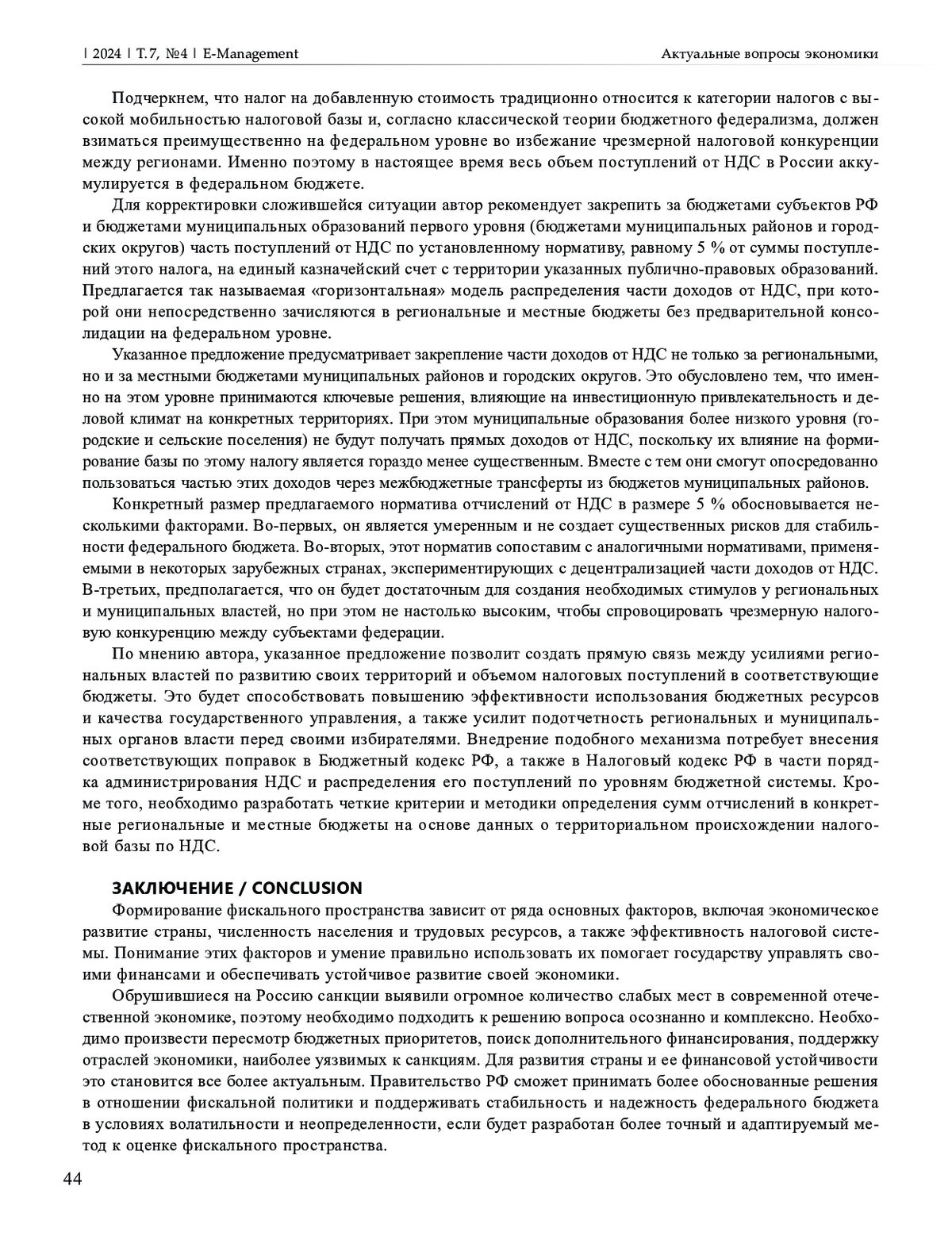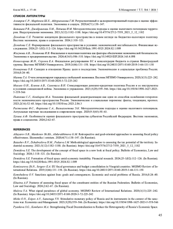 12. Хузина А.Ф. Особенности оценки фискального пространства субъектов Российской Федерации. Вестник экономики, права и социологии. 2024;2:62-67.