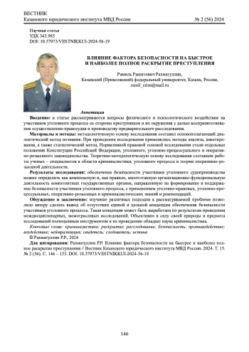 10. Богинский М.М. Механизм обеспечения безопасности личности как гарантия нейтрализации противоправного воздействия процессу производства по уголовному делу: автореф. дис. … канд. юрид. наук: 5.1.4. Казань, 2023. 24 с. EDN: NFWDTA