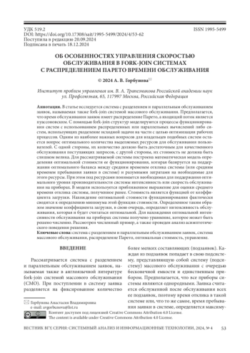 8. Gorbunova A. V. Nonlinear approximation of characteristics of a fork-join queueing system with Pareto service as a model of parallel structure of data processing / A. V. Gorbunova, A. V. Lebedev // Mathematics and Computers in Simulation. - 2023. - Vol. 214. - P. 409-428. EDN: USRKYX