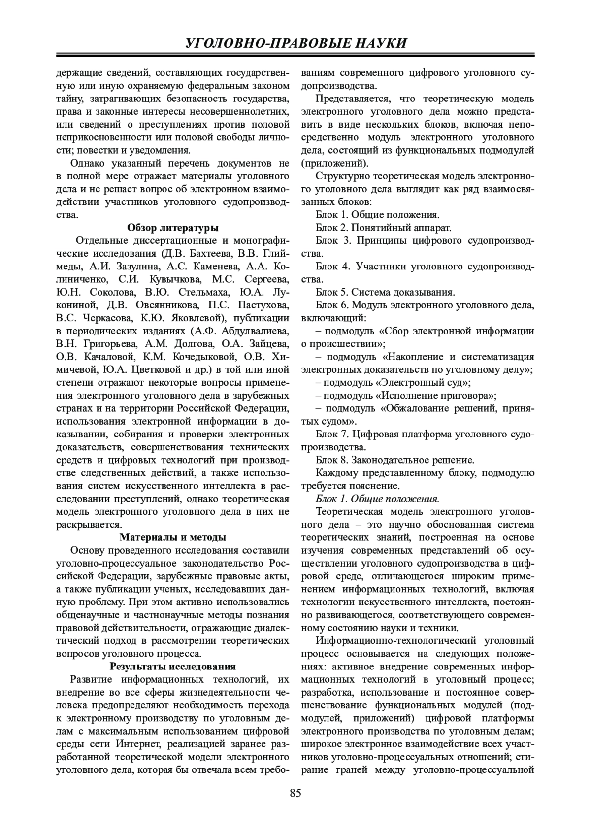 Материалы и методы: в ходе исследования применялись различные методы познания правовой действительности, в том числе формально-логический, системно-структурный, сравнительно-правовой и др. В большей степени был использован метод моделирования, позволивший полноценно представить информационную систему электронного уголовного дела.