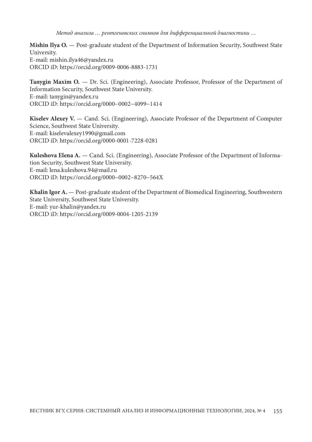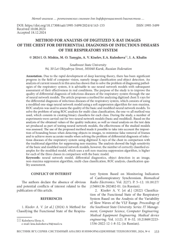 14. Balan E. Novel Neural Network Architecture Using Sharpened Cosine Similarity for Robust Classification of Covid-19, Pneumonia and Tuberculosis Diseases from X-Rays / E. Balan, O. Saraniya // Journal of Intelligent & Fuzzy Systems. - 2023. - Vol. 44. - P. 1-14. DOI: 10.3233/JIFS-222840 EDN: LLUPVM
