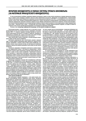 Ключевые фразы: КИНОДИСКУРС, французский кинодискурс, система проката кинофильма, ИЕРАРХИЯ