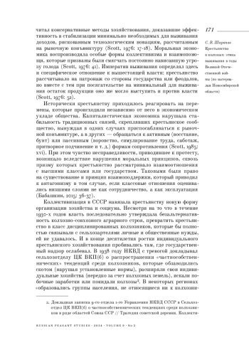2. Мерль Ш. (2017). Формы местного управления в советской деревне накануне Великой Отечественной войны: критерии эффективности и коммуникативные практики предотвращения крестьянских бунтов // Крестьяноведение. Т. 2. № 2. С. 53-76. EDN: ZCINFB