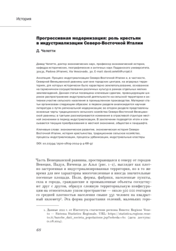 Статья: ПРОГРЕССИВНАЯ МОДЕРНИЗАЦИЯ: РОЛЬ КРЕСТЬЯН В ИНДУСТРИАЛИЗАЦИИ СЕВЕРО-ВОСТОЧНОЙ ИТАЛИИ (2024)
