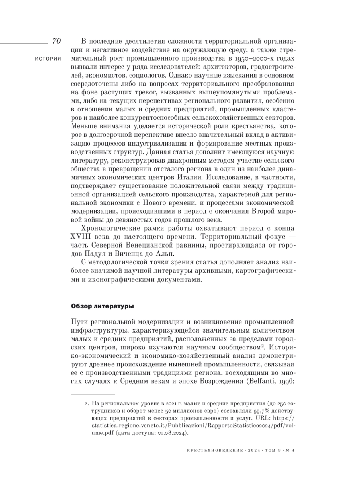 ЧЕЛЕТТИ Д. ПРОГРЕССИВНАЯ МОДЕРНИЗАЦИЯ: РОЛЬ КРЕСТЬЯН В ИНДУСТРИАЛИЗАЦИИ СЕВЕРО-ВОСТОЧНОЙ ИТАЛИИ // КРЕСТЬЯНОВЕДЕНИЕ. 2024. Т. 9 № 4