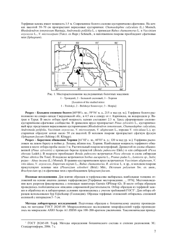 На основе палеоэкологических методов изучения торфяных отложений и радиоуглеродного датирования рассмотрены этапы развития болот в Северном Зауралье в голоцене. Проведенные исследования позволили детально реконструировать историю развития болотной растительности в Северном Зауралье, выявить катастрофические события, которые привели к смене растительных сообществ на болотах и увязать их со временем. В качестве объектов исследования выбрано 3 болотных массива: Троицкий, Большой сосновый и торфяное обнажение Хорпия в долине р. Лозьвы. Показано, что процессы заболачивания в Северном Зауралье начинались в разное время. На торфянике Троицкий торфонакопление началось около 8.0 тыс. лет назад, в Большом Сосновом - около 5.7 тыс. лет назад, в пойме р. Лозьвы (участок Хорпия) - около 5.4 тыс. лет назад. Основными путями заболачивания можно считать суходольное заболачивание лесов в понижениях рельефа и заболачивание послеледниковых озер. При заболачивании озер (Большое сосновое и Троицкое) торфообразование начинается с переходной стадии, с зарастания мелководий пушицей и сфагновыми мхами. При заболачивании елового леса в условиях застойного переувлажнения (торфяник Хорпия) торфообразование начинается с накопления древесного торфа. Этапы развития растительного покрова болот обусловлены климатическими изменениями. В теплые, сухие периоды на болотах развивается древесная растительность. В период похолодания и промерзания торфяников древесные растения исчезают, взамен начинается экспансия сфагновых олиготрофных мхов.