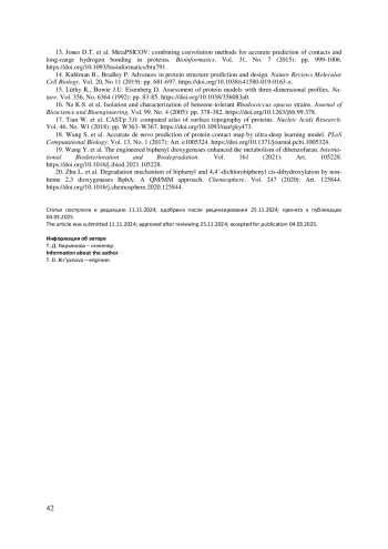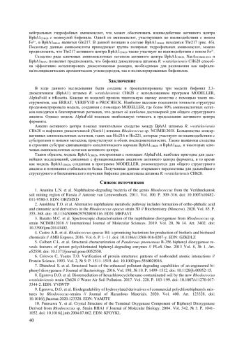 7. Dhindwal S. et al. Structural basis of the enhanced pollutant-degrading capabilities of an engineered biphenyl dioxygenase // Journal of Bacteriology. 2016. Vol. 198, № 10. Р. 1499-1512. DOI: 10.1128/jb.00952-15