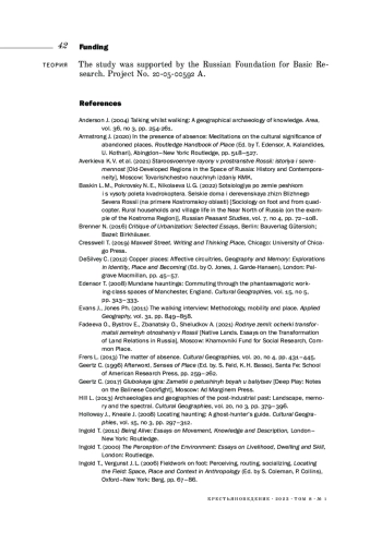 Ключевые фразы: "места сопричастности", мобильные интервью, место, сельская депопуляция, повседневный культурный ландшафт, география "призраков", культурная география, cоциальная антропология