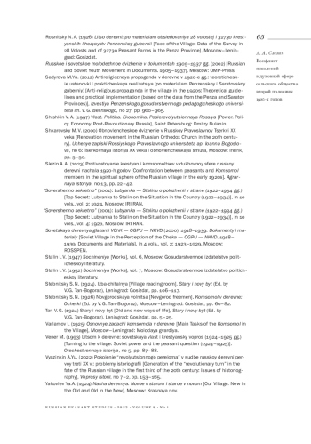 7. Вязинкин А. Ю. (2022). Поколение “революционного перелома” в судьбе русской деревни первой трети XX в.: проблемы историографии // Вопросы истории. № 7-2. С. 153-165. EDN: IPECND