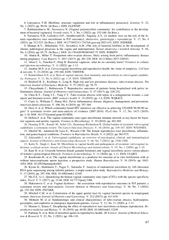 32. Padmaja N. et al. Role of microbial agents in reproductive health // JK Science: Journal of Medical Education & Research. 2021. Vol. 23. №. 2. P. 106-110.