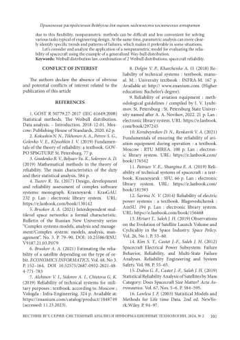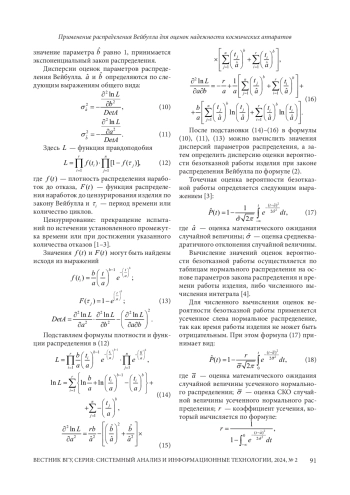 Статья: ПРИМЕНЕНИЕ РАСПРЕДЕЛЕНИЯ ВЕЙБУЛЛА ДЛЯ ОЦЕНОК НАДЕЖНОСТИ КОСМИЧЕСКИХ АППАРАТОВ (2024)