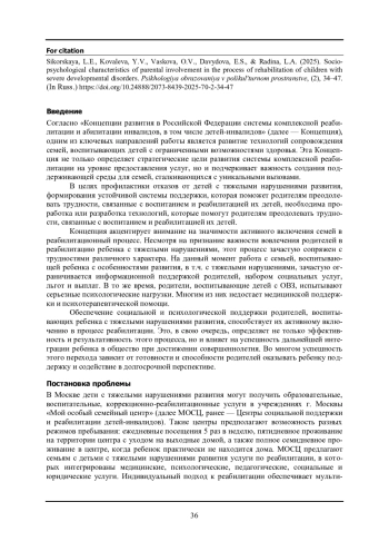 Статья: СОЦИАЛЬНО-ПСИХОЛОГИЧЕСКИЕ ХАРАКТЕРИСТИКИ ВОВЛЕЧЕННОСТИ РОДИТЕЛЕЙ В ПРОЦЕСС РЕАБИЛИТАЦИИ ДЕТЕЙ, ИМЕЮЩИХ ТЯЖЕЛЫЕ НАРУШЕНИЯ РАЗВИТИЯ (2025)