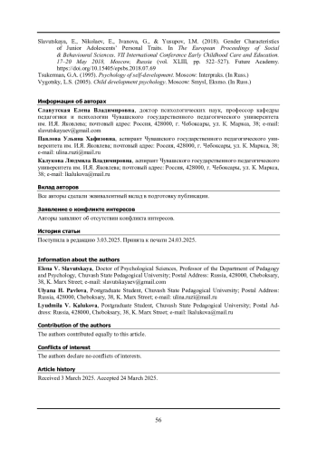 Автор (ы): Славутская Елена Владимировна, Павлова Ульяна Хафизовна, Калукова Людмила Владимировна