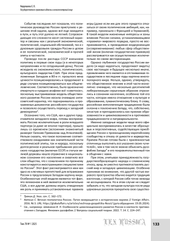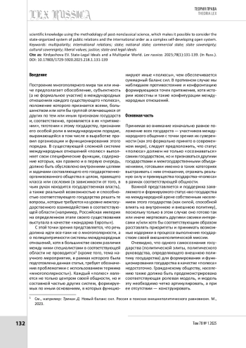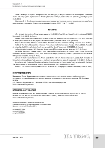 КИРДЯШОВА Е. В. ГОСУДАРСТВЕННО-ПРАВОВЫЕ ИДЕАЛЫ И МНОГОПОЛЯРНЫЙ МИР // LEX RUSSICA (РУССКИЙ ЗАКОН). 2025. ТОМ 78, № 1