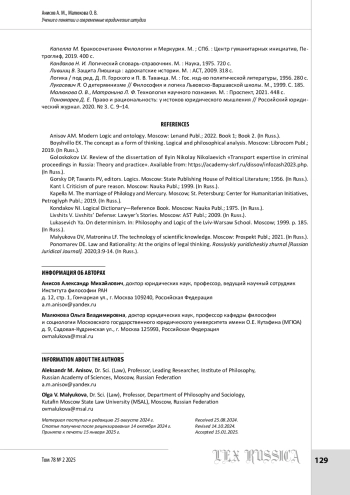 11. Пономарев Д. Е. Право и рациональность: у истоков юридического мышления // Российский юридический журнал. 2020. № 3. С. 9-14.