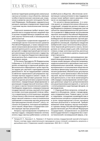 3. Кузнецова Т. Е. Актуальные проблемы совершенствования законодательства о науке // Законодательство о науке: современное состояние и перспективы развития / отв. ред. д-р юрид. наук В. В. Лапаева. М. : Норма, 2004. С. 78-102.