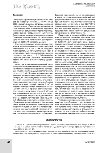 2. Белов М. Н. Состав «хулиганство» в Уголовном кодексе РФ: временная трансформация // Российский судья. 2021. № 10. С. 25-28.
