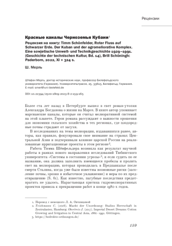 Review of the book: Schönfelder T., Fluss R., Erde S. Der Kuban und der agromeliorative Komplex. Eine sowjetische Umwelt- und Technikgeschichte 1929-1991. (Geschichte der technischen Kultur, Bd. 14), Brill Schöningh: Paderborn, 2022, XI + 324 s.