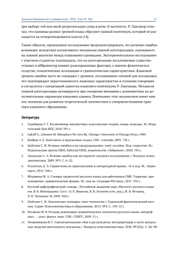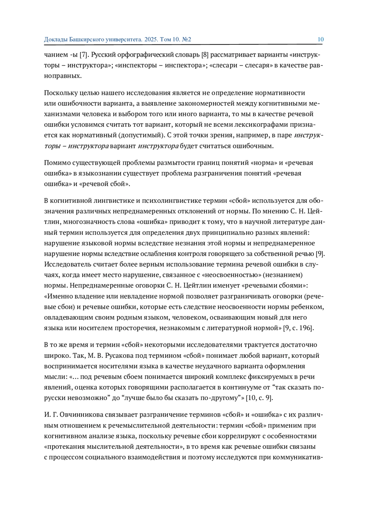 УЛЬЯНОВА Э. Ф., ШОВГЕНИН А. Н. КОГНИТИВНЫЕ МЕХАНИЗМЫ ВОЗНИКНОВЕНИЯ РЕЧЕВЫХ ОШИБОК И СБОЕВ У НОСИТЕЛЕЙ РУССКОГО ЯЗЫКА // ДОКЛАДЫ БАШКИРСКОГО УНИВЕРСИТЕТА. 2025. Т. 10 № 2