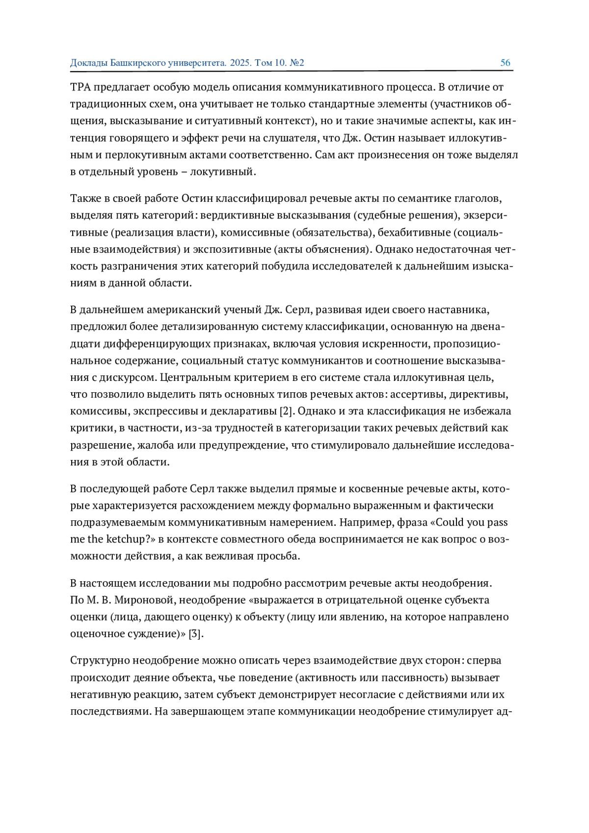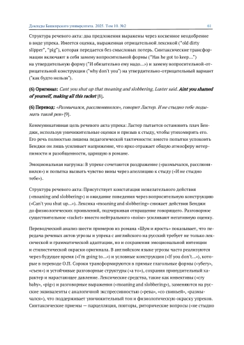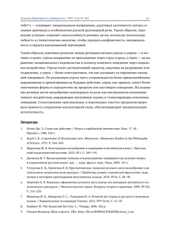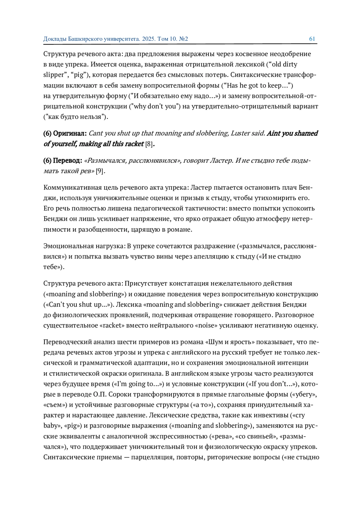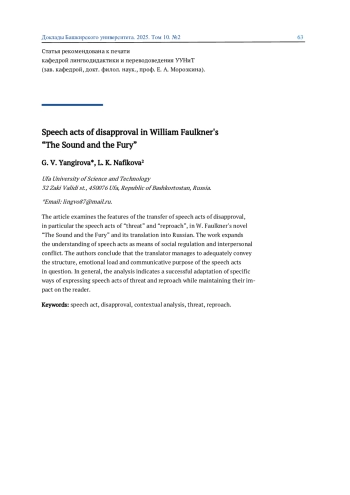 САЛИМЬЯНОВА Г. В., НАФИКОВА Л. К. РЕЧЕВЫЕ АКТЫ НЕОДОБРЕНИЯ В РОМАНЕ У. ФОЛКНЕРА «ШУМ И ЯРОСТЬ» // ДОКЛАДЫ БАШКИРСКОГО УНИВЕРСИТЕТА. 2025. Т. 10 № 2