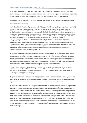 7. Бородавкина Е. А. Идеологический аспект категории модальности в политическом дискурсе // Перевод. Язык. Культура: Мат-лы IX междунар. научно-практ. конф., Санкт-Петербург, 25 мая 2018 г. / отв. ред. Л. В. Коцюбинская. СПб.: Ленинградский гос. ун-т им. А. С. Пушкина, 2018. С. 282-287. EDN: XWACMH