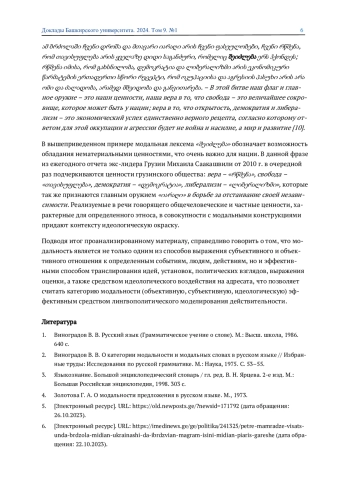 4. Золотова Г. А. О модальности предложения в русском языке. М., 1973.